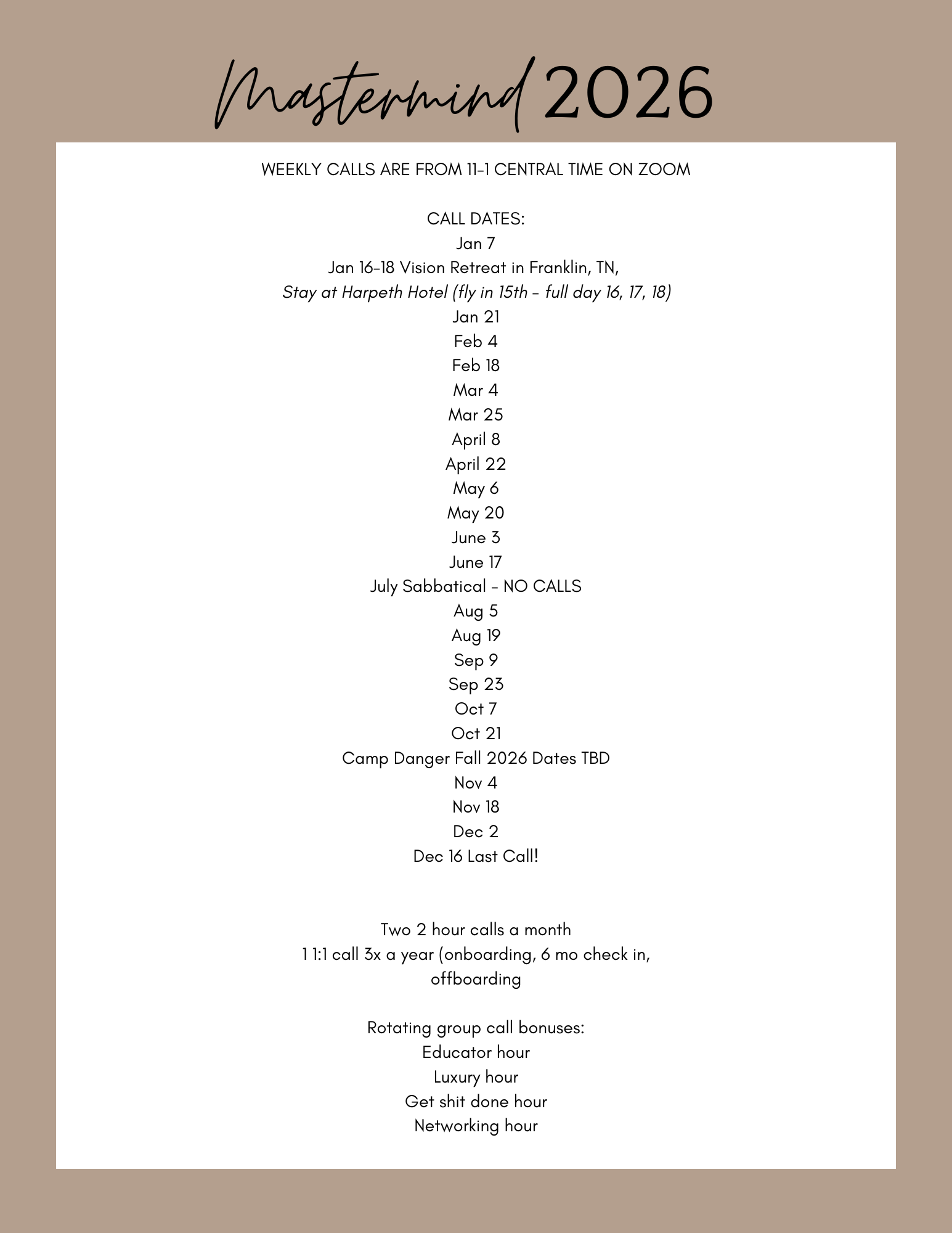 *We want you to feel 100% confident in your decision! If within 15 days you feel this program is not a good fit, you may be eligible to receive a full refund. Proof of completing assignments, attending calls, and finishing lessons is required.